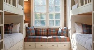 Maximizing Space with Stylish Built-In Bunk Beds This arrangement perfectly balances coziness and practicality. The stacked bunk beds are enhanced by rich navy and gold linens, while the built-in drawers provide ample storage without encroaching on the room’s footprint. Bright and Airy Lakehouse-Inspired Bunk Rooms This luminous bunk room combines aesthetic appeal with functionality, making it a welcoming haven for …