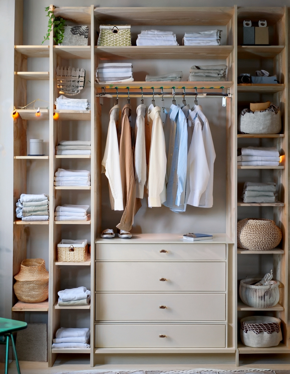 Utilizing vertical space is key when dealing with limited closet dimensions. Installing tall shelves allows you to store shoes, folded garments, or storage containers efficiently, making use of areas that often go unused. This approach is excellent for keeping everyday items and seasonal wear organized, ensuring even the smallest closets feel spacious and orderly.