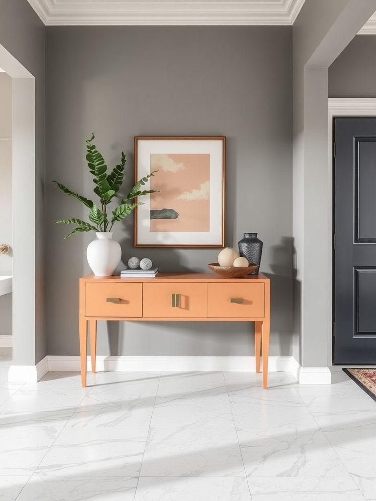 Introduce lively hues through accent furniture like a painted console table or a vibrant storage cabinet. These pieces not only add a pop of color but also provide functional surfaces for keys, mail, and decorative accents.