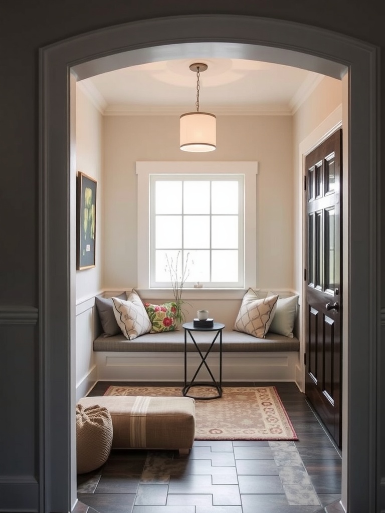 Adding a cozy seating nook in your entryway invites guests to pause and feel at ease. A cushioned bench or a stylish chair offers a practical spot for putting on or removing shoes, enhancing both comfort and functionality.