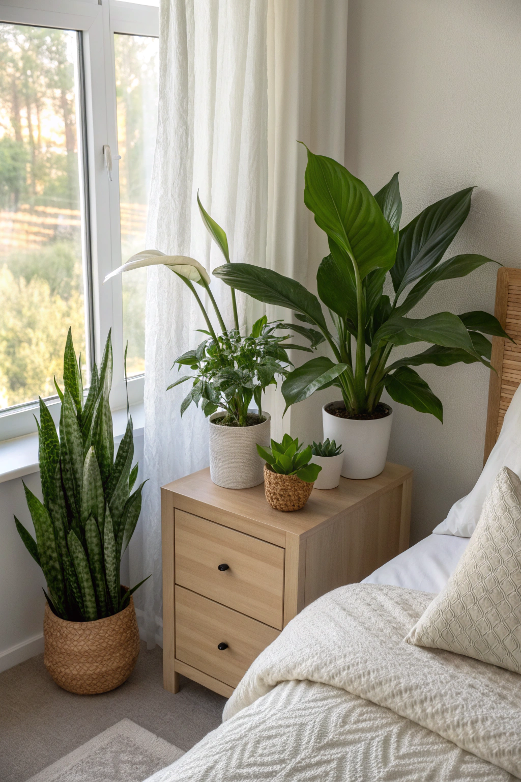 Indoor greenery not only beautifies your bedroom but also promotes a peaceful atmosphere and cleaner air. Popular choices include: