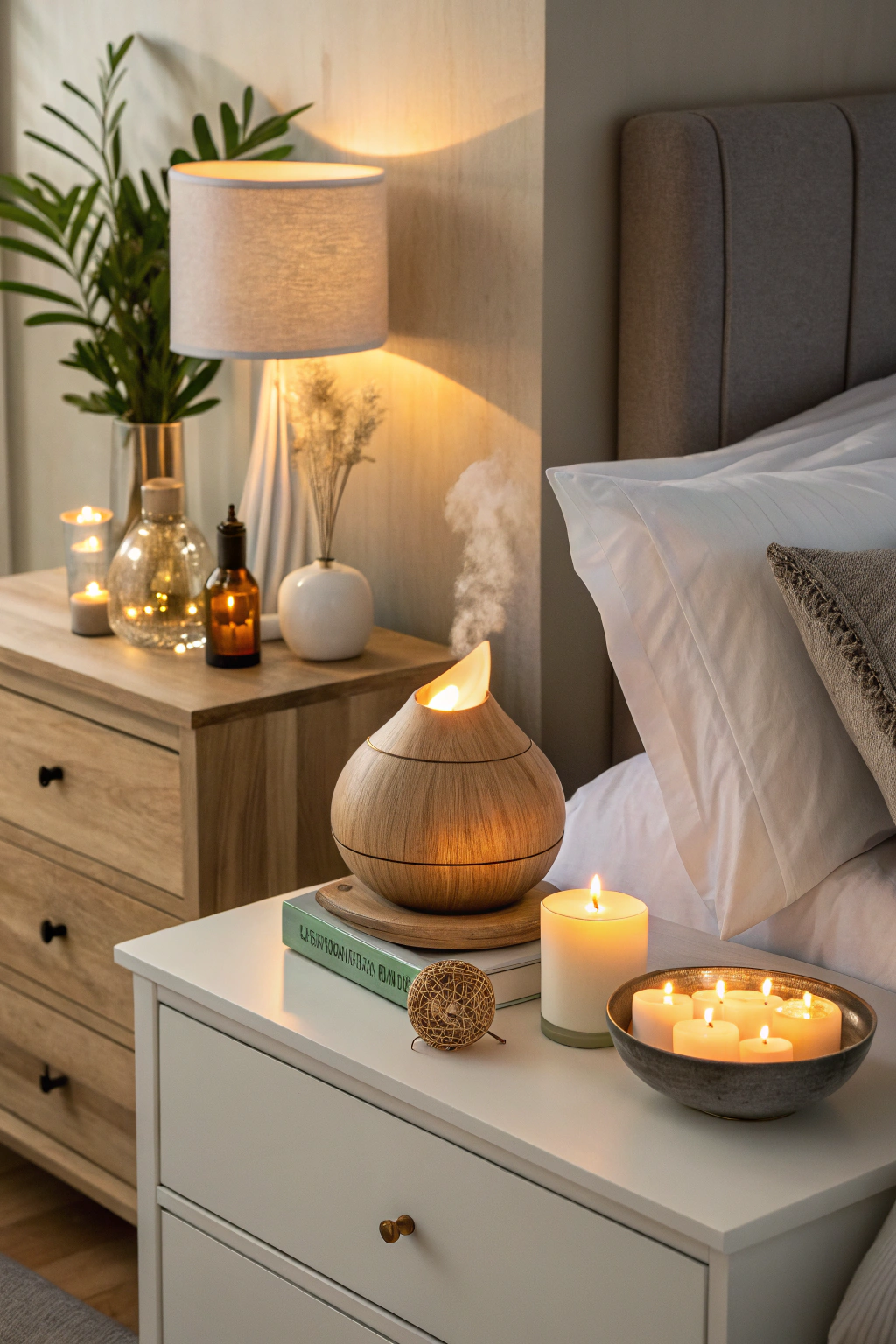 - Essential oil diffusers to disperse soothing scents like lavender or eucalyptus