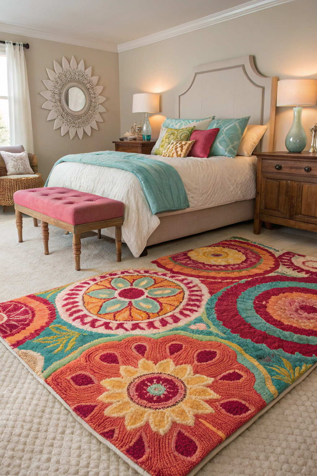 Area rugs are an excellent way to add softness and visual appeal to your bedroom. Opt for plush, high-pile rugs that feel luxurious underfoot, perfect for stepping out of bed. Bold patterns or vibrant colors can serve as statement pieces, enlivening the room’s design. Position rugs strategically near your bed or seating areas to create inviting zones that encourage relaxation.