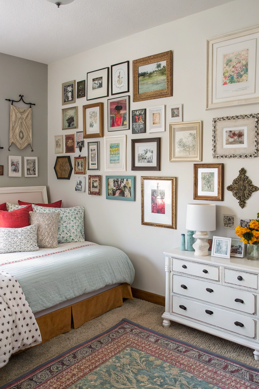 Transform an empty wall into a captivating gallery that showcases your individuality. Curate a collection of artwork, photographs, and decorative objects that resonate with you. Mix and match frame styles and sizes to add visual intrigue, and arrange them thoughtfully to maintain balance and flow. This personalized display not only enhances your bedroom’s aesthetic but also creates a meaningful space that tells your story.