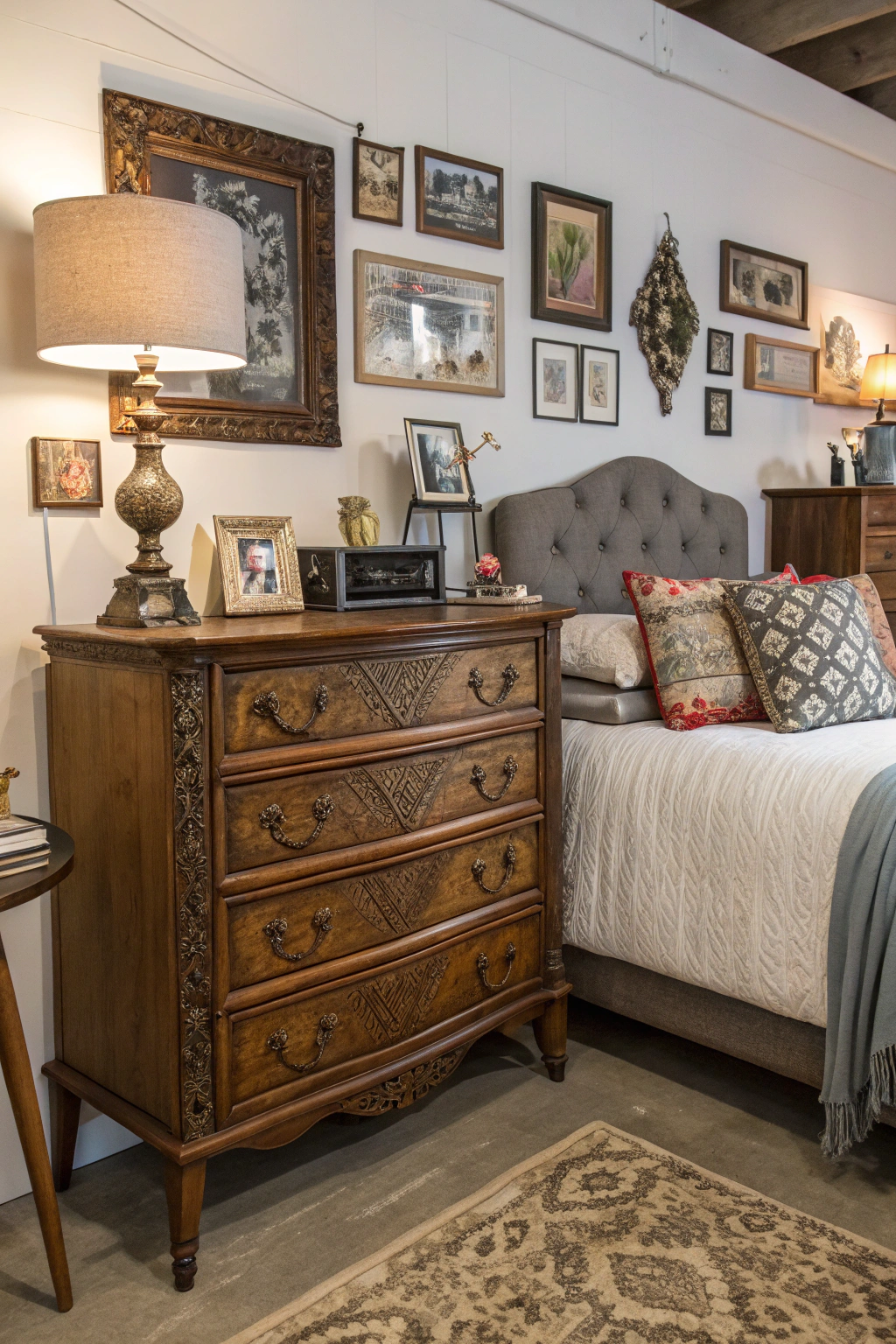 Incorporating vintage furniture or decor can infuse your bedroom with character and a sense of history. Seek out distinctive items like a retro vanity, a classic armchair, or an ornate mirror from thrift shops, flea markets, or online vintage stores. Blending these timeless pieces with contemporary elements creates an eclectic and inviting atmosphere that feels both curated and cozy.