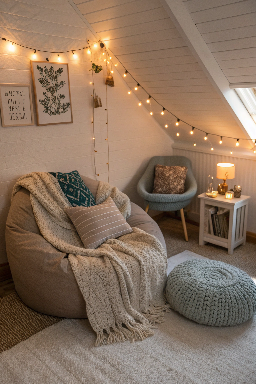 Design a cozy corner dedicated to relaxation by incorporating a plush armchair or a large bean bag. Add soft throw blankets and decorative cushions to enhance comfort. A small side table provides a convenient spot for beverages or books, while warm lighting from a floor lamp or string lights creates an inviting glow. This nook becomes your personal retreat for unwinding after a long day.