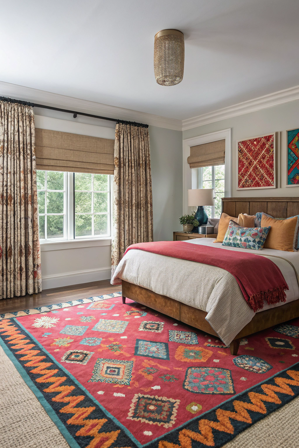 A bold rug can serve as the centerpiece of your bedroom, adding color, texture, and personality. Look for rugs featuring vibrant patterns, rich hues, or unique weaves that complement your style. Large area rugs can define the space and add warmth underfoot, while layering smaller rugs creates a dynamic, curated look. This simple addition can tie your room together and make it feel complete.
