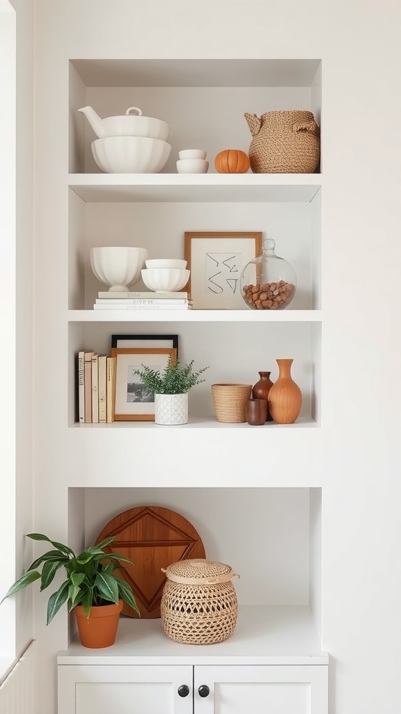 Open shelving offers a minimalist way to showcase your favorite items while keeping clutter at bay. Arrange a curated selection of ceramics, books, or plants to add personality and charm. Maintaining intentional organization ensures your space remains fresh and inviting.