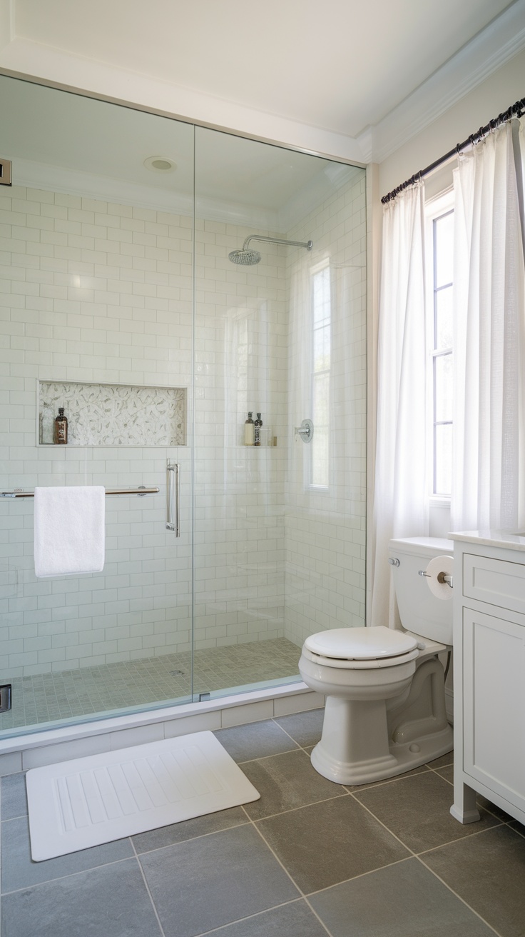 For those seeking luxury bathroom ideas, a glass enclosure is both practical and elegant. Pair it with bold or subtle accents to personalize your spa-like space.