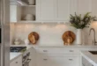 A classic white kitchen remains eternally stylish. Opt for shaker-style white cabinets paired with marble or quartz countertops and a subway tile backsplash for a crisp, refined look. Vintage-inspired cabinet pulls and an elegant chandelier add sophistication. Consider glass-front cabinets to showcase your finest dinnerware or decorative kitchenware.