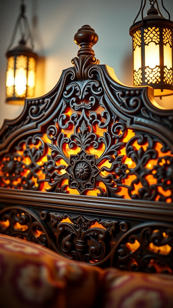 Picture yourself unwinding in a boho-inspired bedroom where the headboard’s ethnic carvings harmonize with the soft illumination of Moroccan lanterns. The interplay of natural wood textures with vibrant textiles-such as colorful cushions and traditional Moroccan rugs-creates a layered, inviting atmosphere.