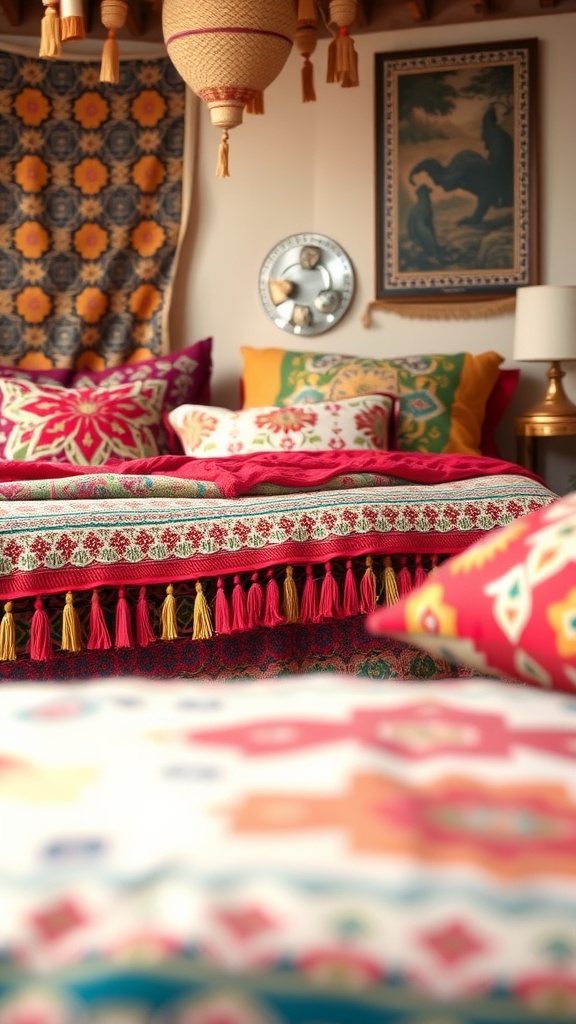 These bold palettes are perfect for anyone wanting to inject a bohemian flair into their bedroom while maintaining a sense of opulence. Layering colors and textures thoughtfully can transform your space into a vibrant Moroccan-inspired haven.
