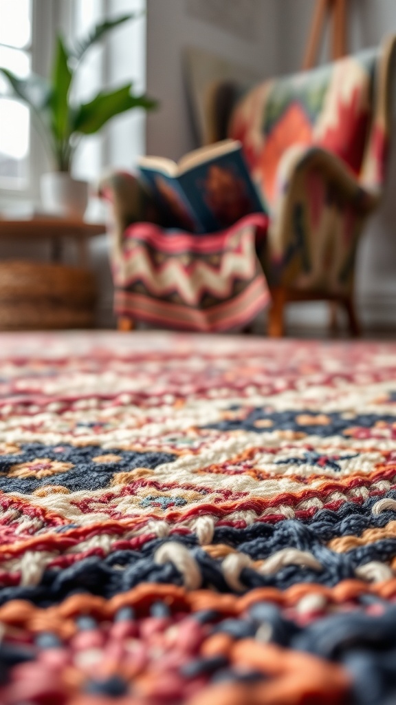 Imagine stepping onto a soft, colorful rug crafted by skilled artisans, its intricate patterns serving as both a visual centerpiece and a cozy foundation. Pair these rugs with Moroccan lanterns and woven baskets to complete the authentic look.