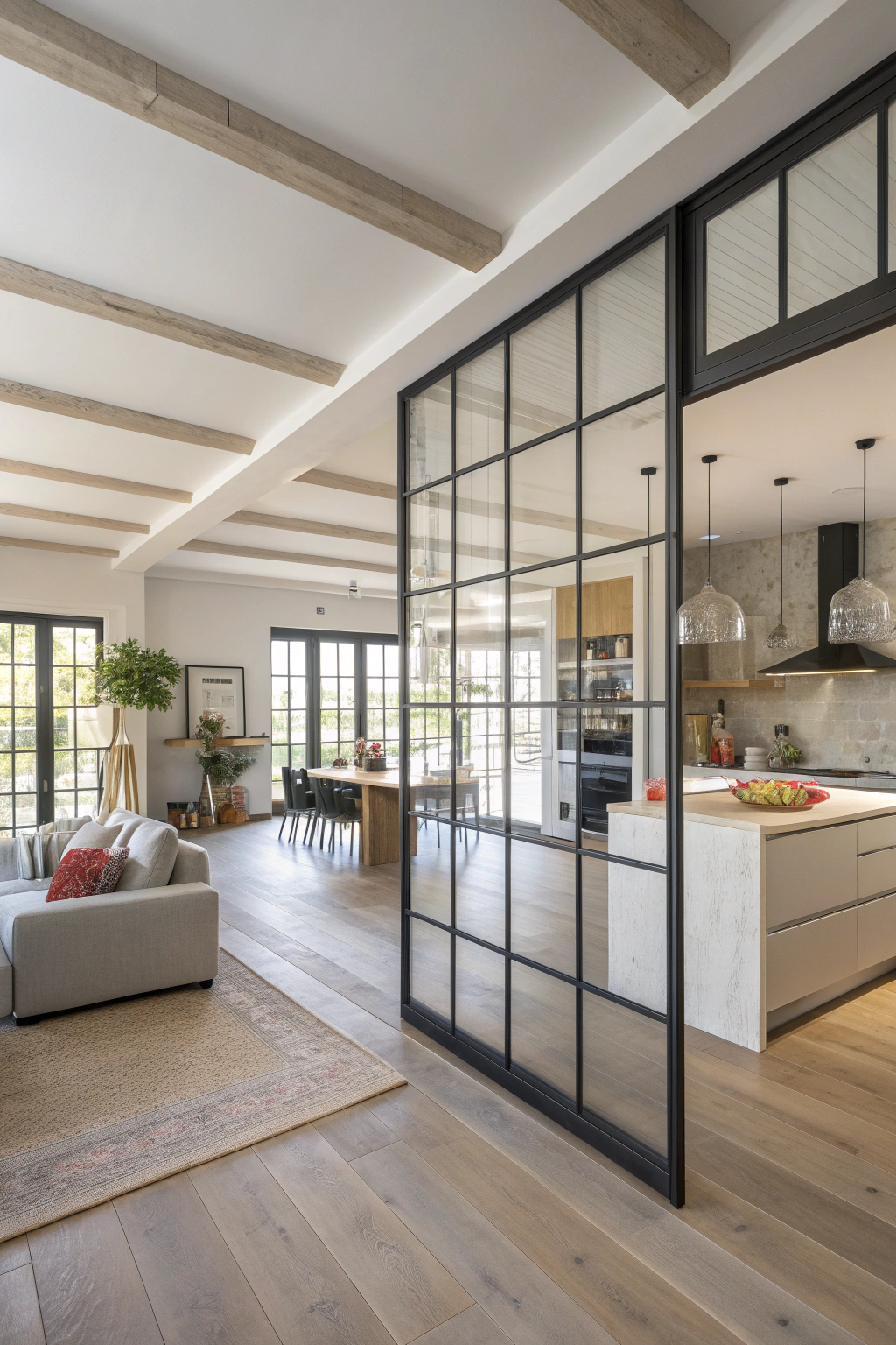 Maintain openness while creating subtle separations with glass partitions. These allow light to permeate while delineating functional zones. Options like frosted or tinted glass provide privacy without compromising the airy feel, making them ideal for balancing openness and intimacy.