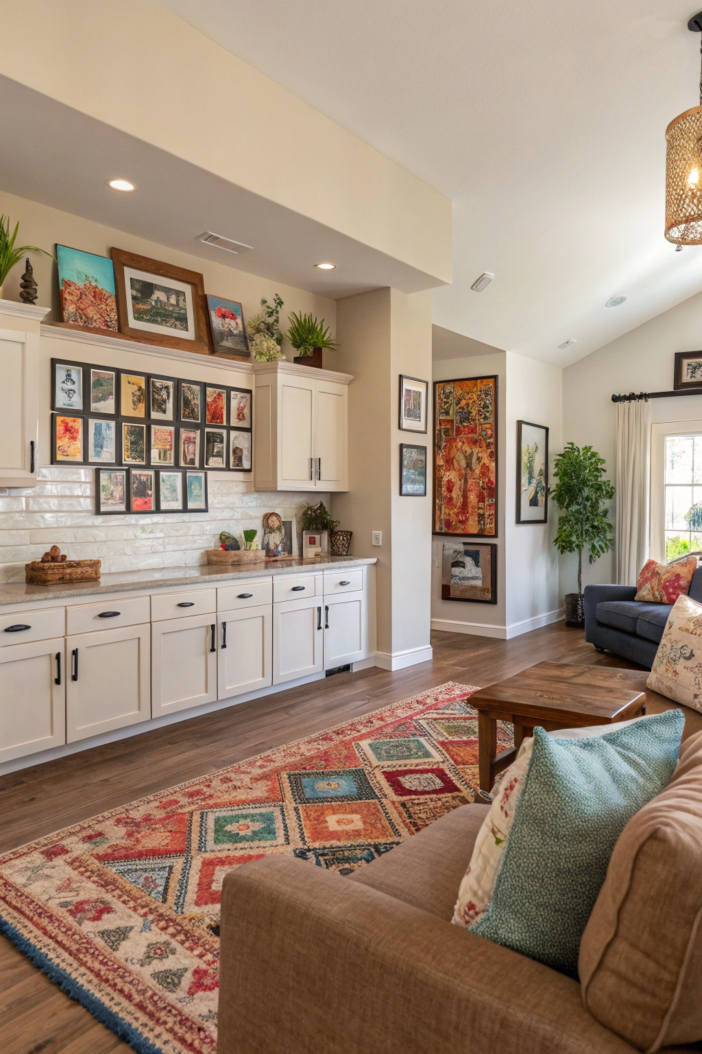 Infuse your open-concept kitchen and living room with personality by adding personalized touches. Display cherished family photos in creative frames, incorporate vibrant artwork, or showcase handcrafted pieces that tell your story. Statement rugs and custom cushions can further enhance warmth and individuality, making your space uniquely yours.