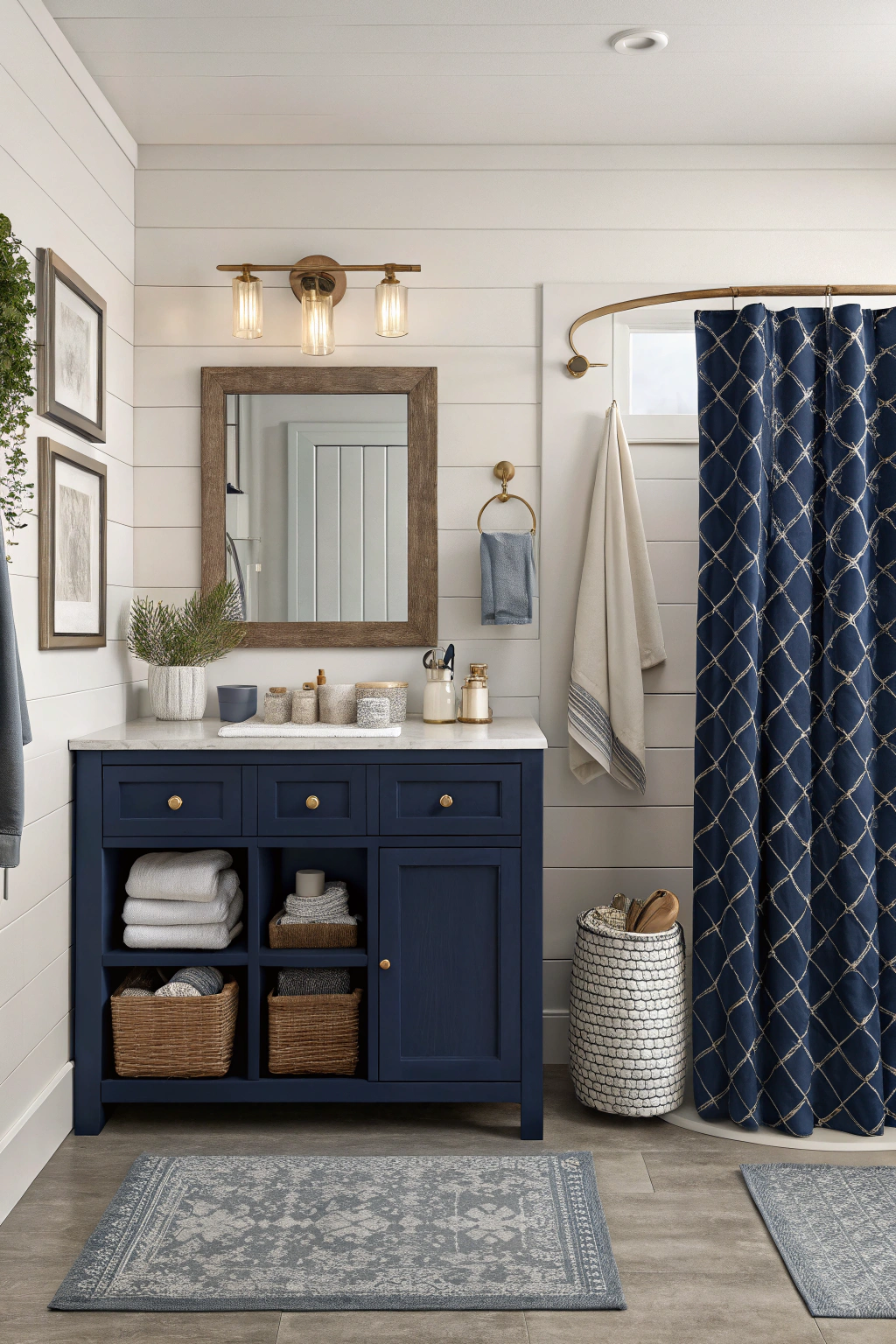 Incorporating navy blue elements can add a layer of richness and refinement to your bathroom’s design. Whether through plush towels, elegant shower curtains, or a standout vanity, navy provides a cozy yet polished feel. Pair these accents with soft neutral tones or shimmering metallics to create a harmonious balance. This color choice not only enhances the room’s warmth but also lends a timeless charm that invites relaxation.