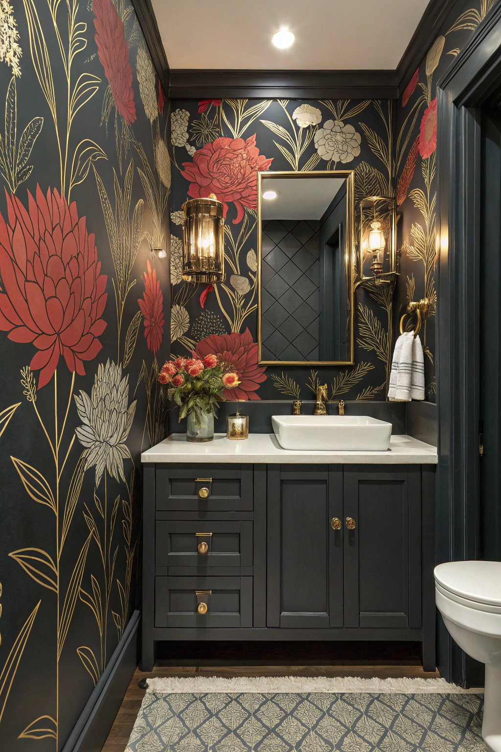 Wallpaper with bold patterns or rich textures can dramatically personalize your dark bathroom. Opt for designs featuring abstract shapes, botanical prints, or intricate geometrics to create a captivating focal point. This approach transforms a simple space into a stylish retreat, reflecting your individual taste. Modern wallpapers are also moisture-resistant, making them practical for bathroom environments.