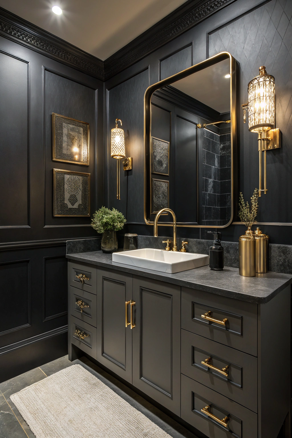 Opting for black walls can instantly redefine your bathroom, lending it a sleek and contemporary vibe. This daring choice sets a dramatic stage that accentuates your fixtures and décor elements. To balance the intensity, incorporate warm metallic touches such as copper or gold, which add texture and a welcoming glow. Proper lighting is essential here-strategically placed fixtures ensure the space feels cozy rather than overwhelming. This approach makes a bold yet elegant statement that’s hard to ignore.