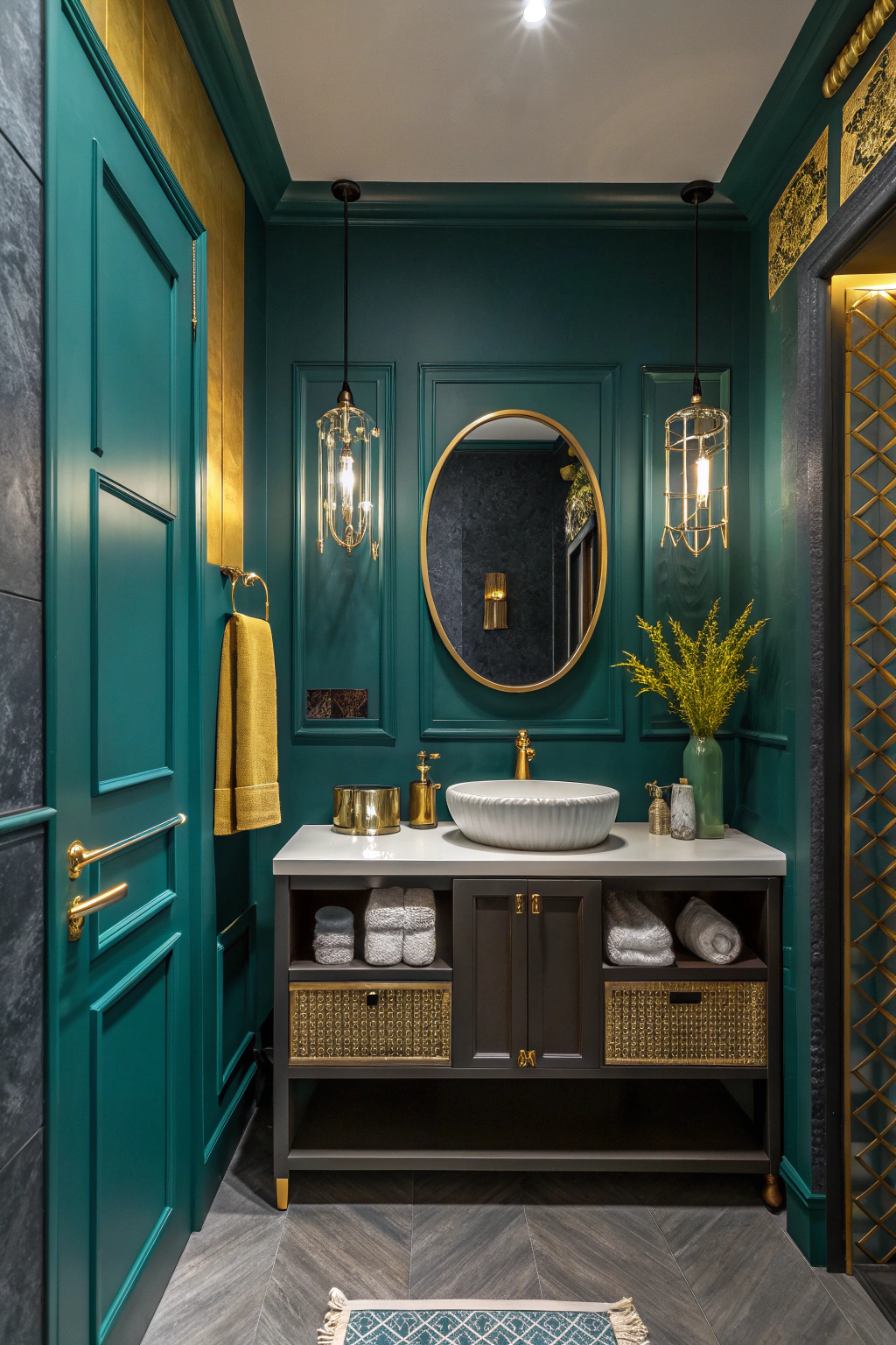 Incorporating lively accent colors can invigorate your dark bathroom, adding personality and warmth. Consider jewel tones like emerald green, burnt orange, or deep burgundy to create eye-catching contrasts. These hues work beautifully with dark palettes, making the space feel inviting and dynamic. Metallic accents also complement these colors, adding a touch of glamour.