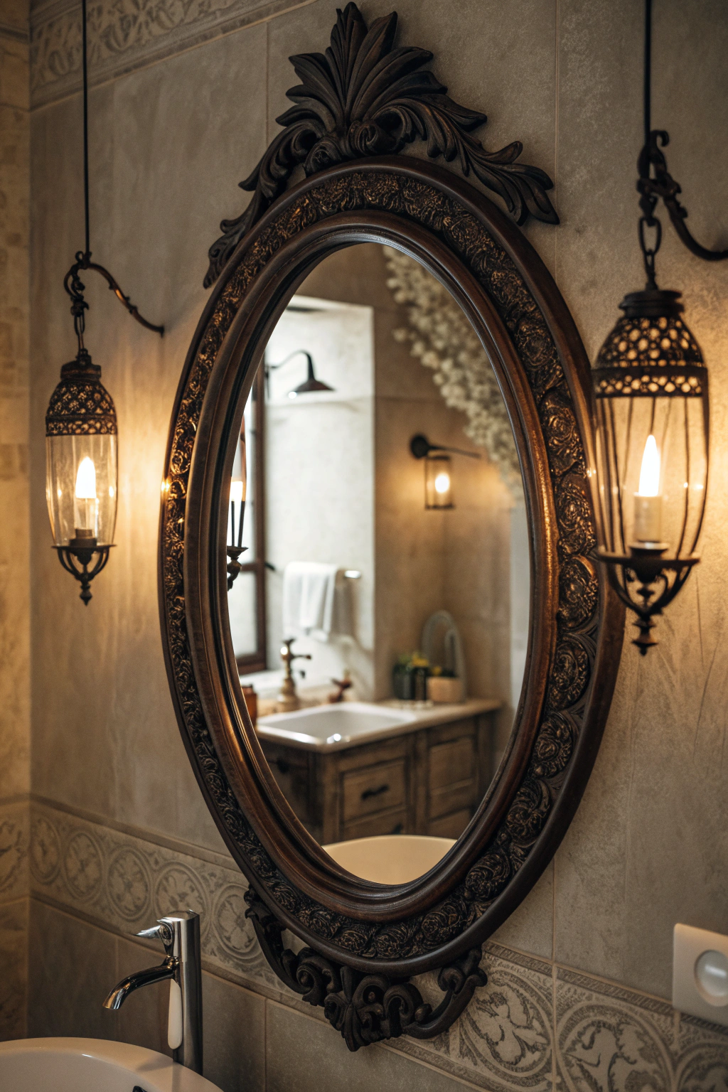 Adding vintage-style dark mirrors can infuse your bathroom with charm and personality. Look for ornate frames with detailed craftsmanship or antique finishes that evoke timeless elegance. Unique shapes like oval or round mirrors can serve as captivating focal points, reflecting your personal style and complementing the room’s lighting.