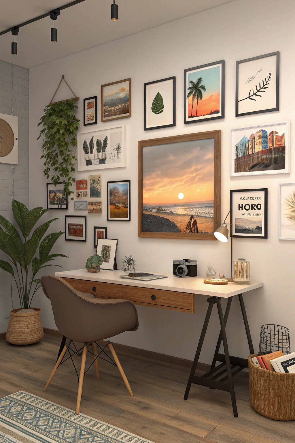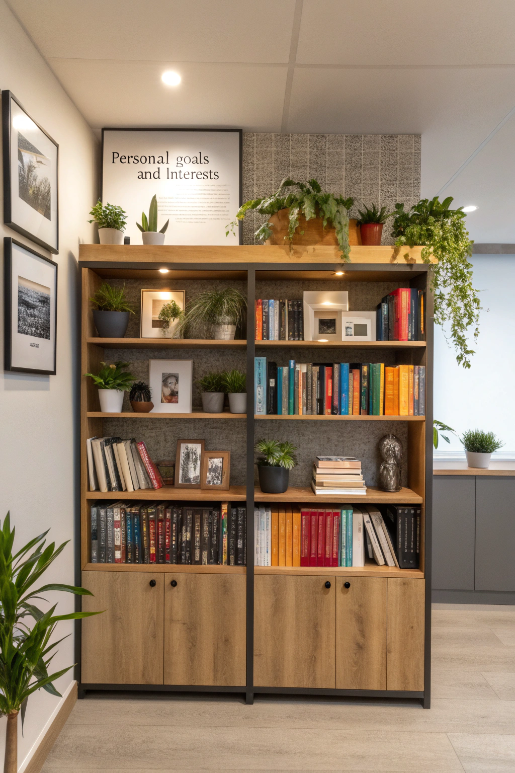 Design a gallery wall that tells your story by combining photographs, artwork, and meaningful keepsakes. Arrange these elements thoughtfully, balancing color schemes and frame sizes to create visual appeal. This personalized display not only beautifies your office but also serves as a daily source of motivation, reminding you of your achievements and aspirations.