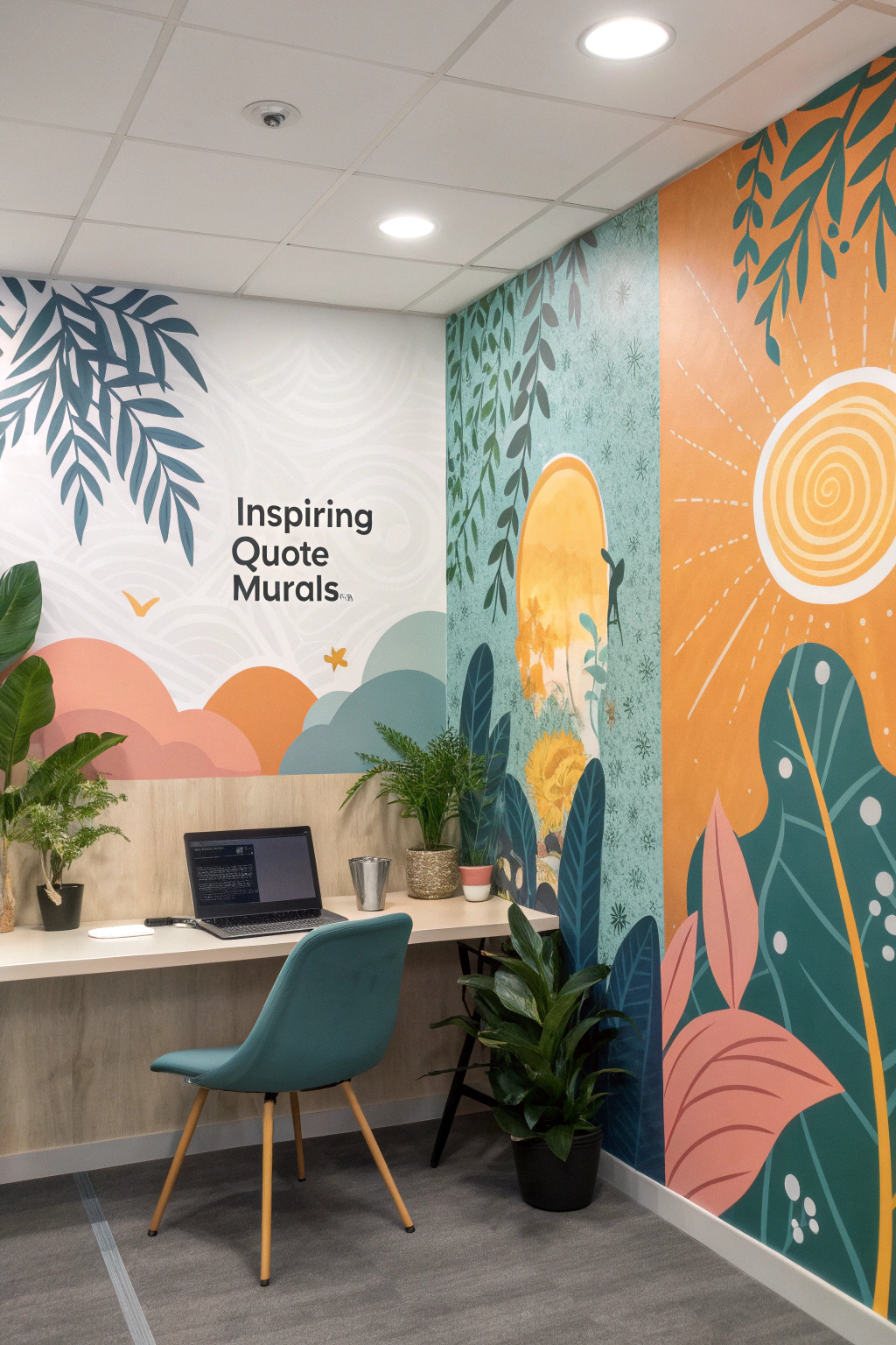 Incorporate inspiring quote murals to infuse your office with positivity and drive. Select phrases that resonate deeply with your values and ambitions, placing them in prominent spots for frequent viewing. These murals not only enhance the aesthetic but also cultivate a mindset geared toward productivity and perseverance.