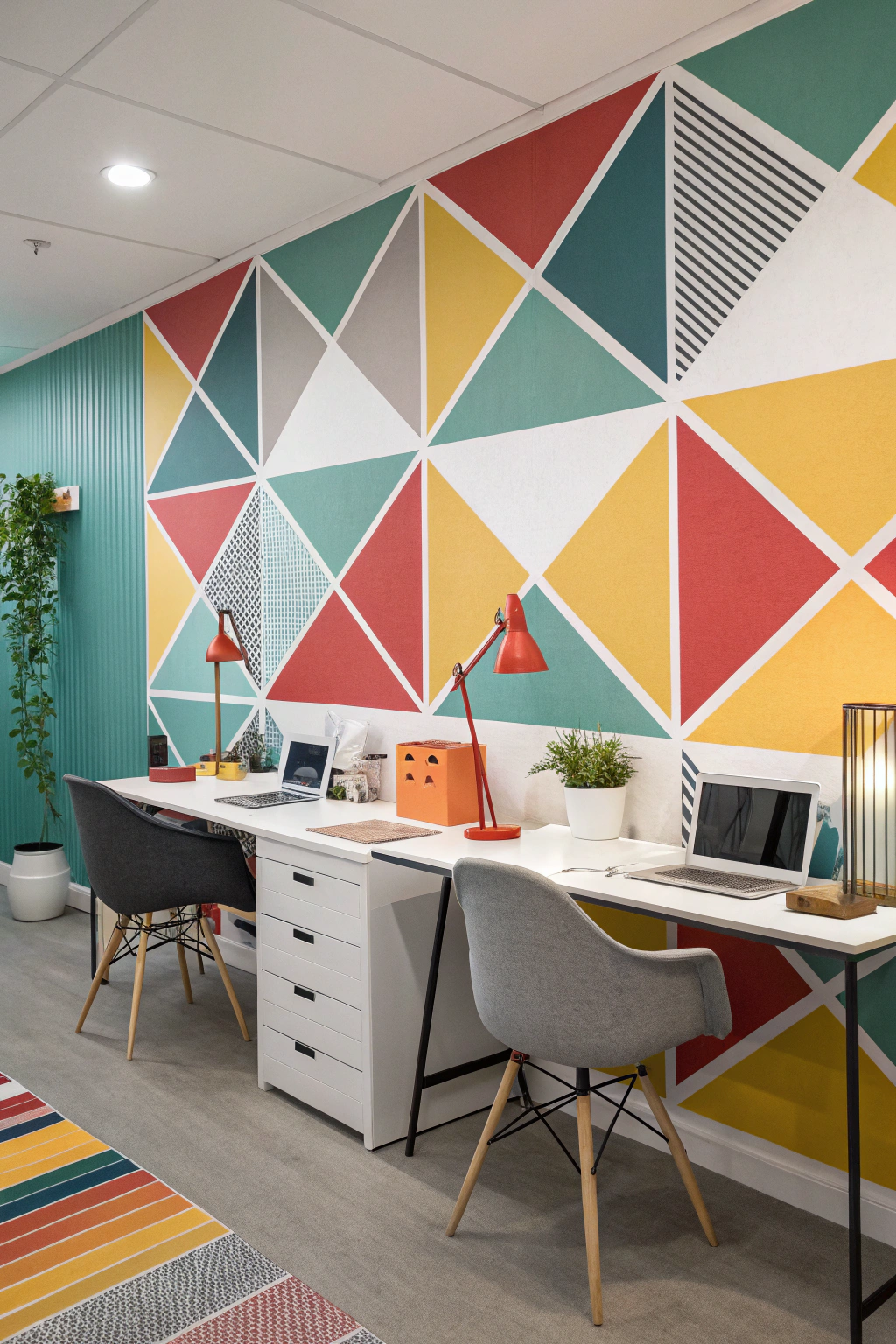 Geometric patterns add a contemporary and energetic flair to your office. Use these designs in wallpapers, desk accessories, or furniture. Choose bold colors for a striking statement or muted tones for subtle sophistication. Embracing geometric motifs can stimulate creativity and enhance your workspace’s visual appeal.