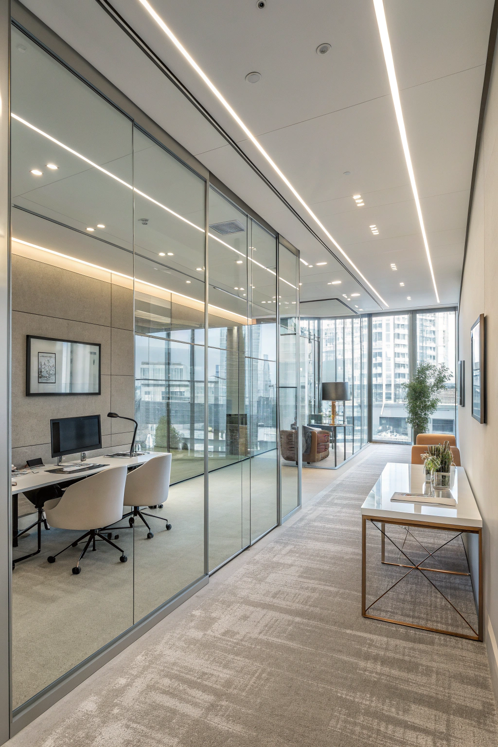 - Glass furniture pieces for a sleek, modern aesthetic.