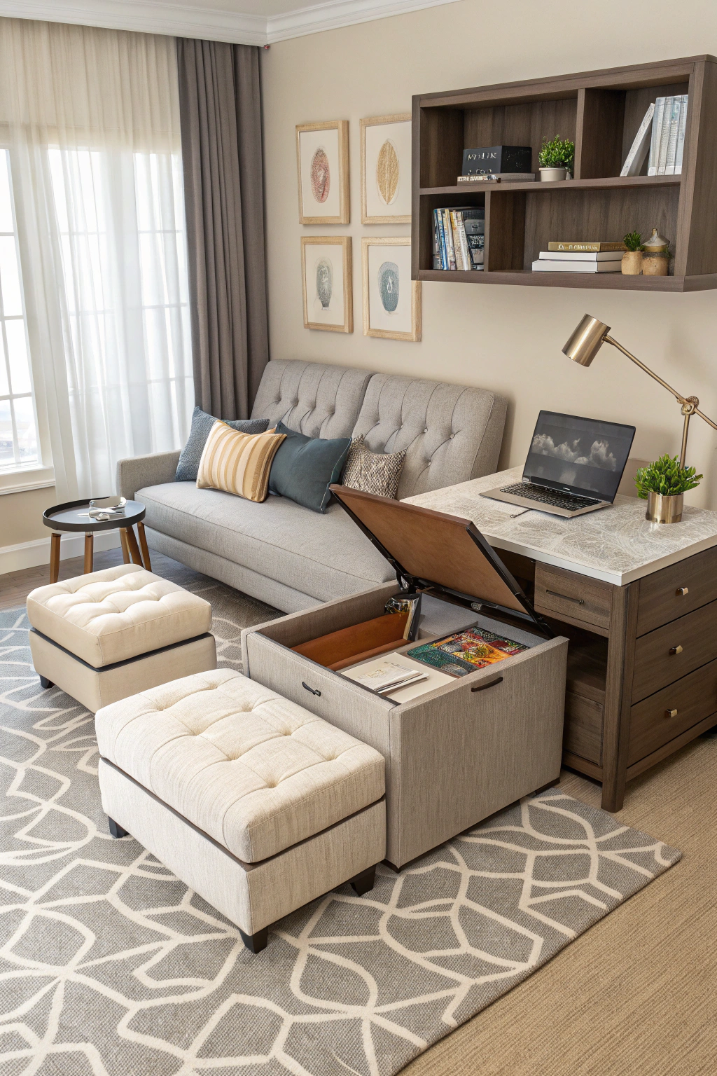 - Storage ottomans: Choose pieces that double as seating and hidden storage.