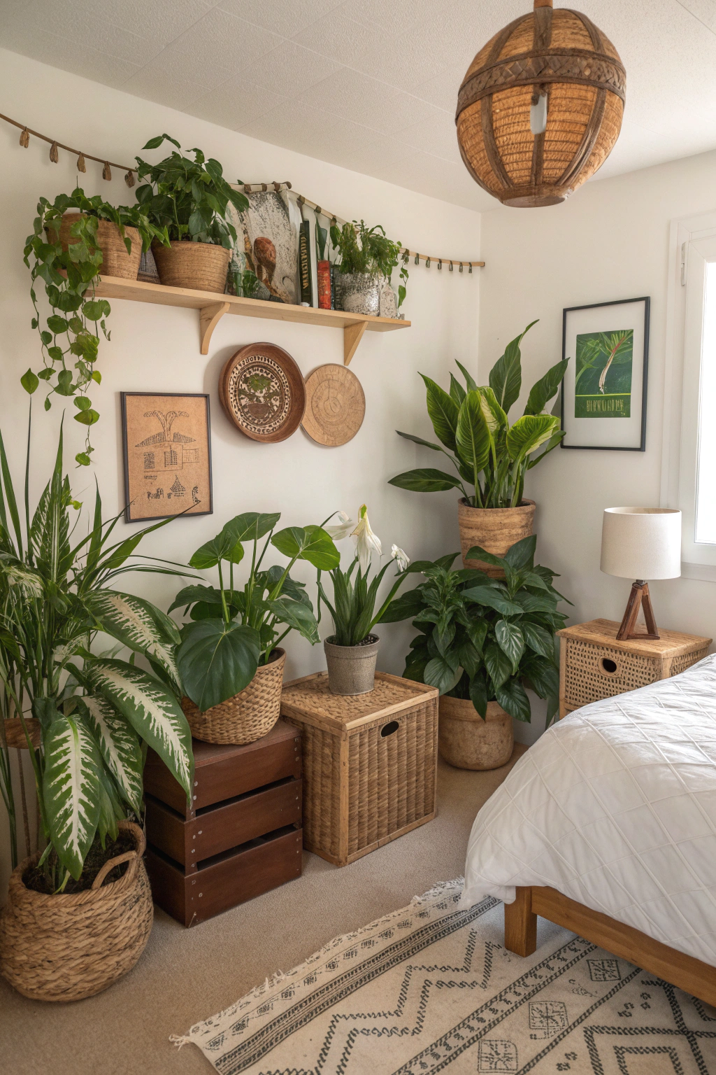 Adding greenery to your guest room not only beautifies the space but also improves air quality. Consider easy-care plants such as: