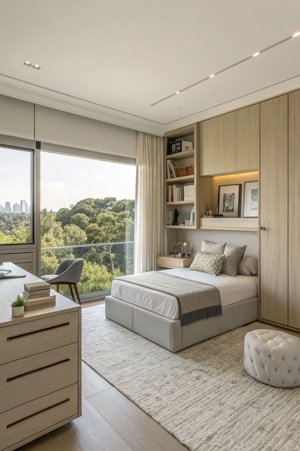 - Functional furniture: Choose streamlined, multi-use pieces that conserve space.