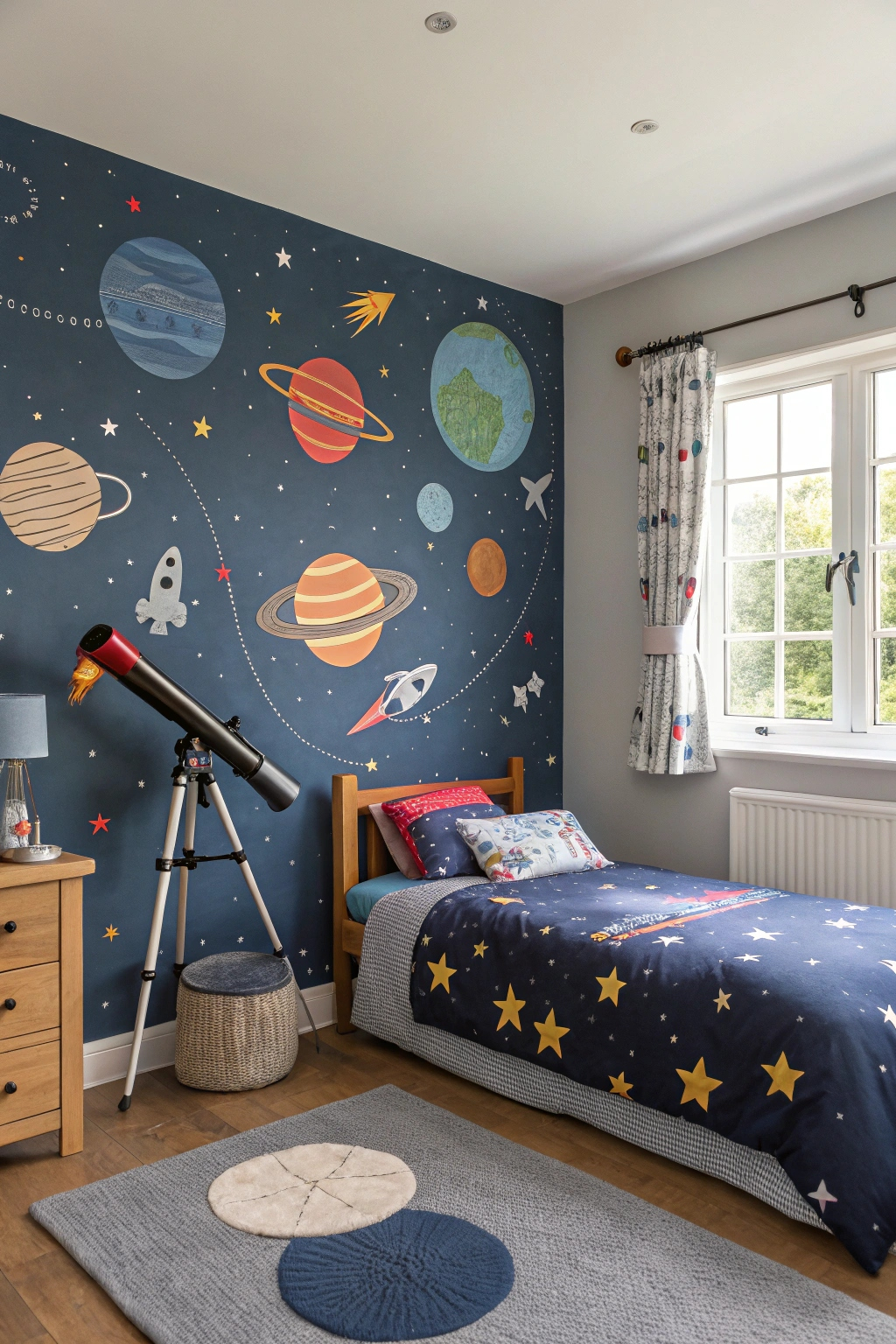 - Wall decals featuring planets, stars, and rockets to spark curiosity.