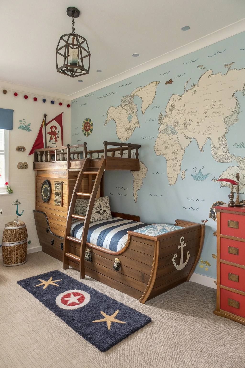Set sail on a swashbuckling adventure by designing a pirate-themed room that sparks your child’s imagination. Consider these creative touches: