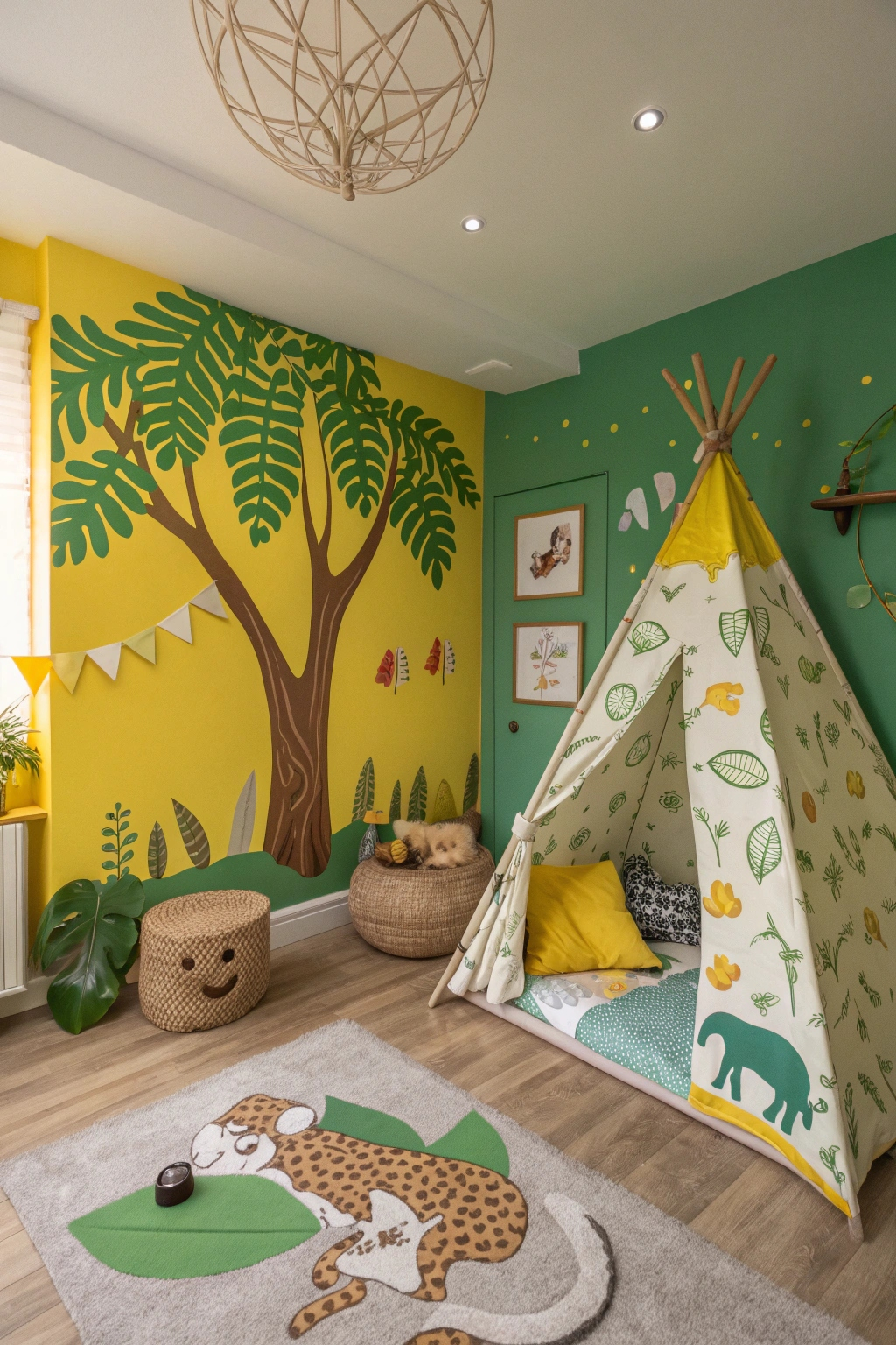 Transform your child’s room into a vibrant jungle oasis bursting with life and color. Use rich greens and sunny yellows on the walls, complemented by animal prints and leafy patterns. Add playful elements like a cozy tent or a mural of towering trees to create a snug hideaway. Plush jungle animals and adventurous artwork will inspire endless creativity in this lively space.