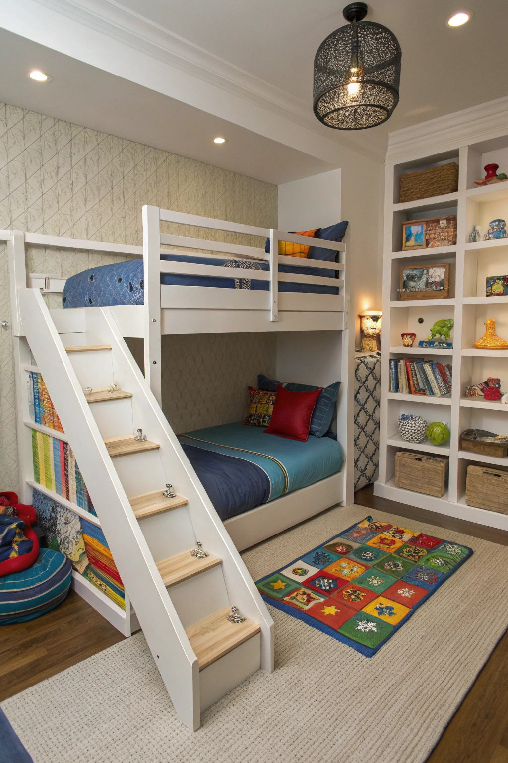 Bunk beds offer a playful and practical solution for maximizing space. Consider loft beds with slides for added fun or multi-level bunks with built-in play areas underneath. Customize with vibrant colors, themed bedding, or integrated shelves for toys, crafting a unique and adventurous sleeping space.