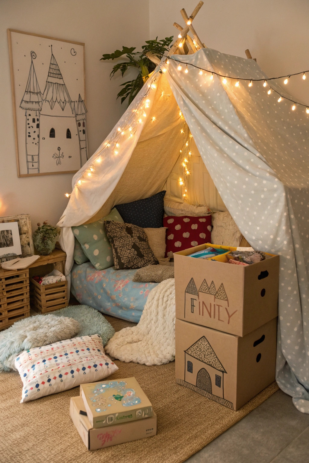 Build the ultimate play fort by combining blankets, pillows, and furniture to create a cozy hideaway. Enhance the ambiance with fairy lights or use cardboard boxes for added structure. Encourage your child to personalize the fort with drawings or favorite toys, turning it into a unique adventure zone.