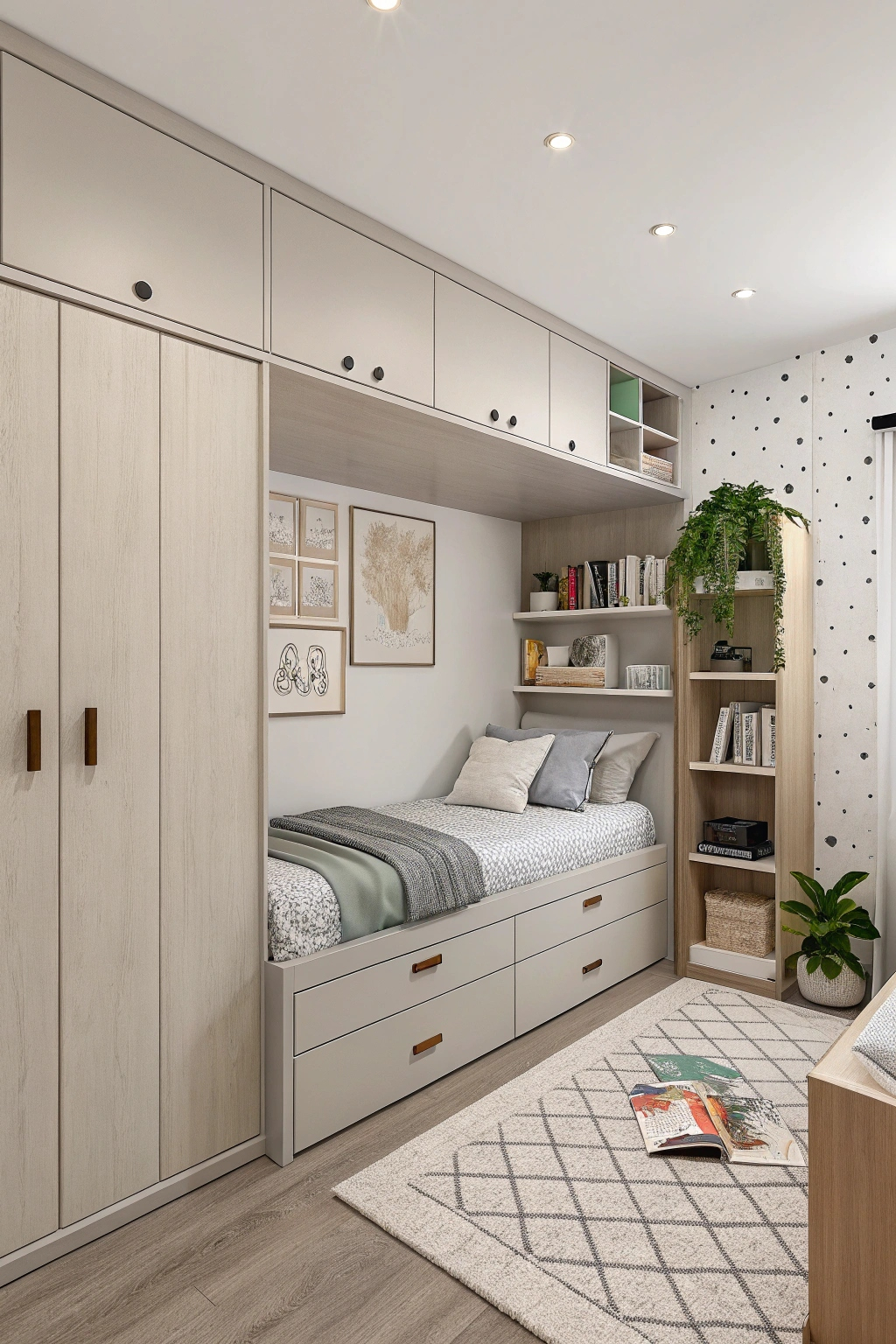 - Choose multifunctional furniture, such as beds with built-in storage.