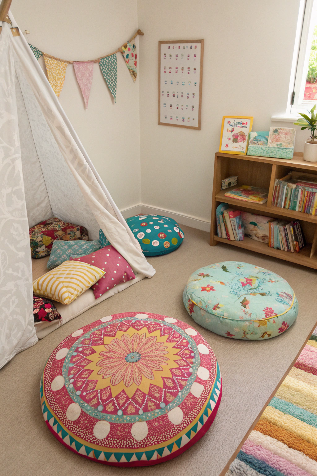 Maximize small spaces by creating inviting play areas with floor cushions. Here are some ideas: