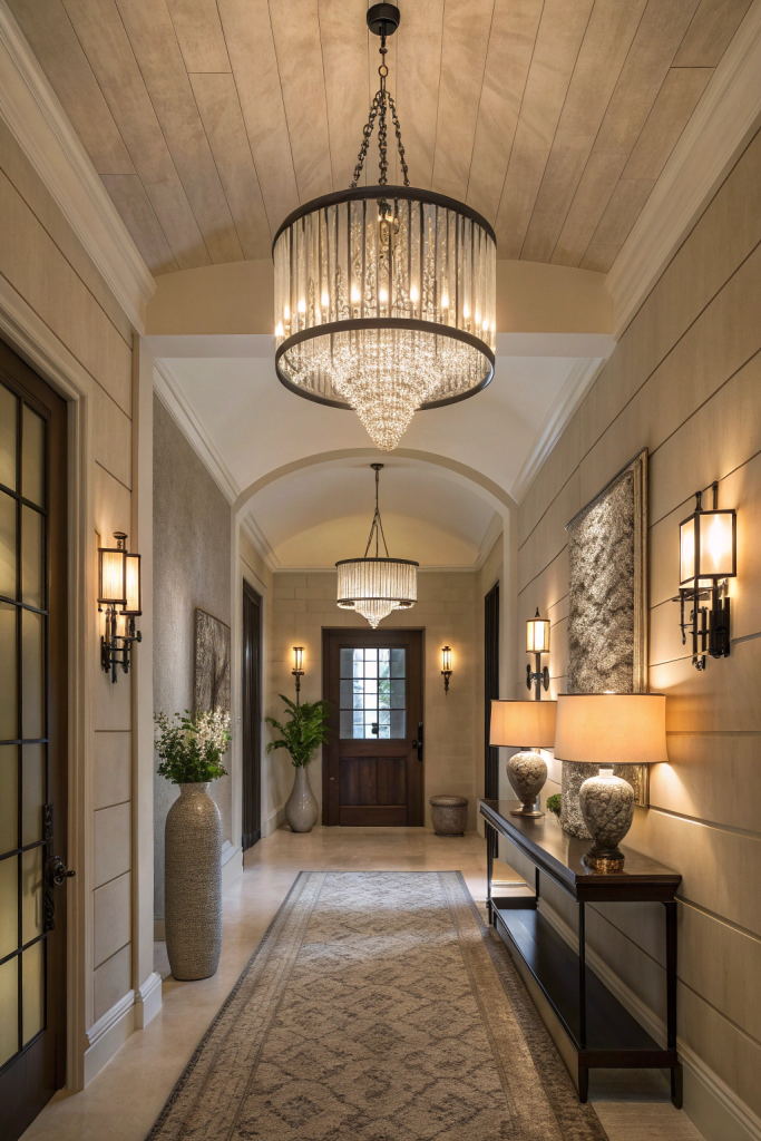 Lighting plays a pivotal role in setting the ambiance of your entryway. Consider installing a sculptural chandelier or a cluster of pendant lights that serve as a focal point. For a softer glow, add wall sconces or table lamps with warm-toned bulbs. Unique fixtures, such as those crafted from natural materials or featuring geometric designs, can spark conversation and elevate the space’s character.