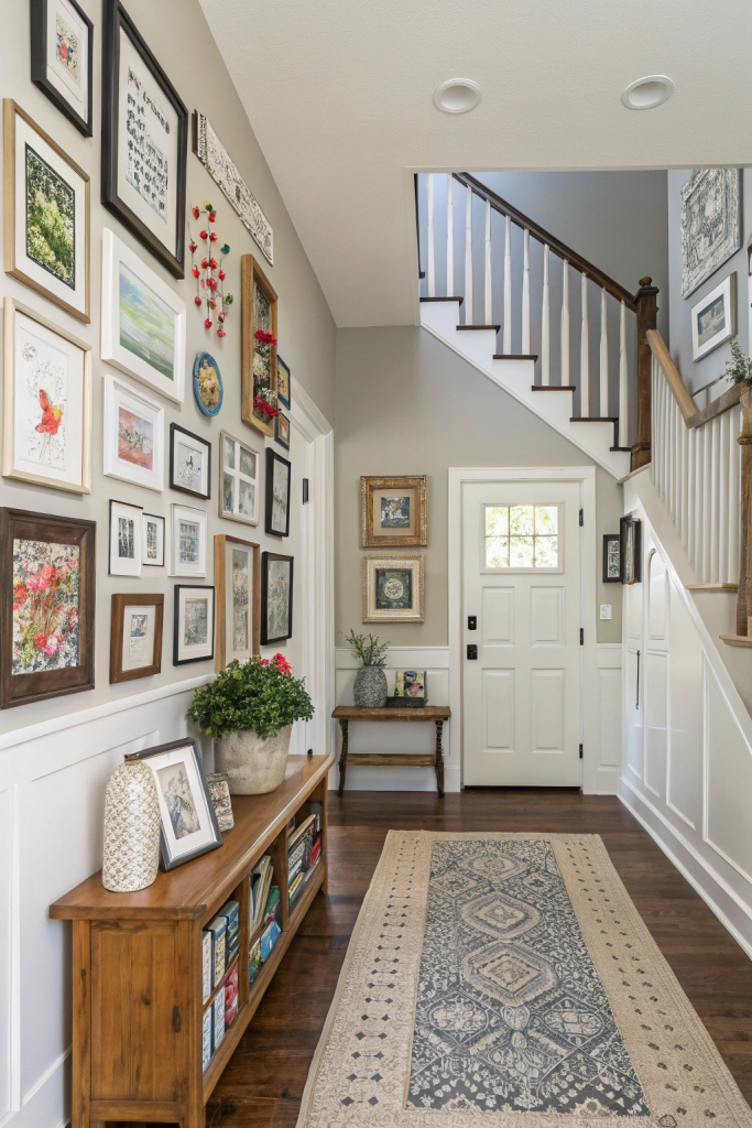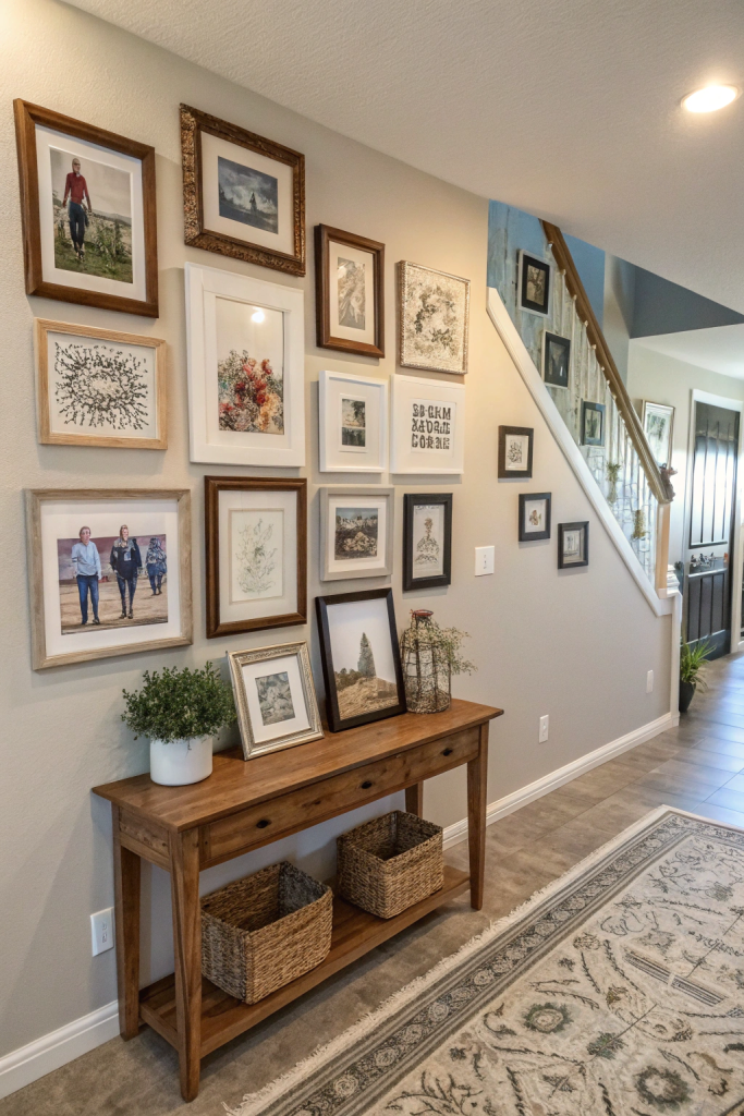 A thoughtfully arranged gallery wall can infuse your entryway with character and storytelling. Select a blend of artwork, photographs, and decorative objects that reflect your journey and interests. Arrange them in a balanced or eclectic layout, mixing frame styles and sizes for depth. Incorporate personal keepsakes to make the display uniquely yours.