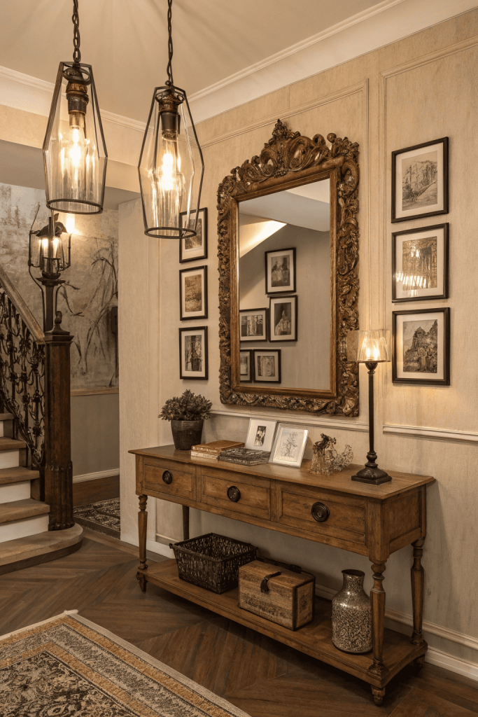 Adding vintage elements to your foyer introduces warmth and a sense of history. Mix in antique mirrors, retro console tables, or classic light fixtures to create a unique ambiance. Vintage artwork or heirloom pieces can further personalize the space, blending old-world charm with contemporary style.