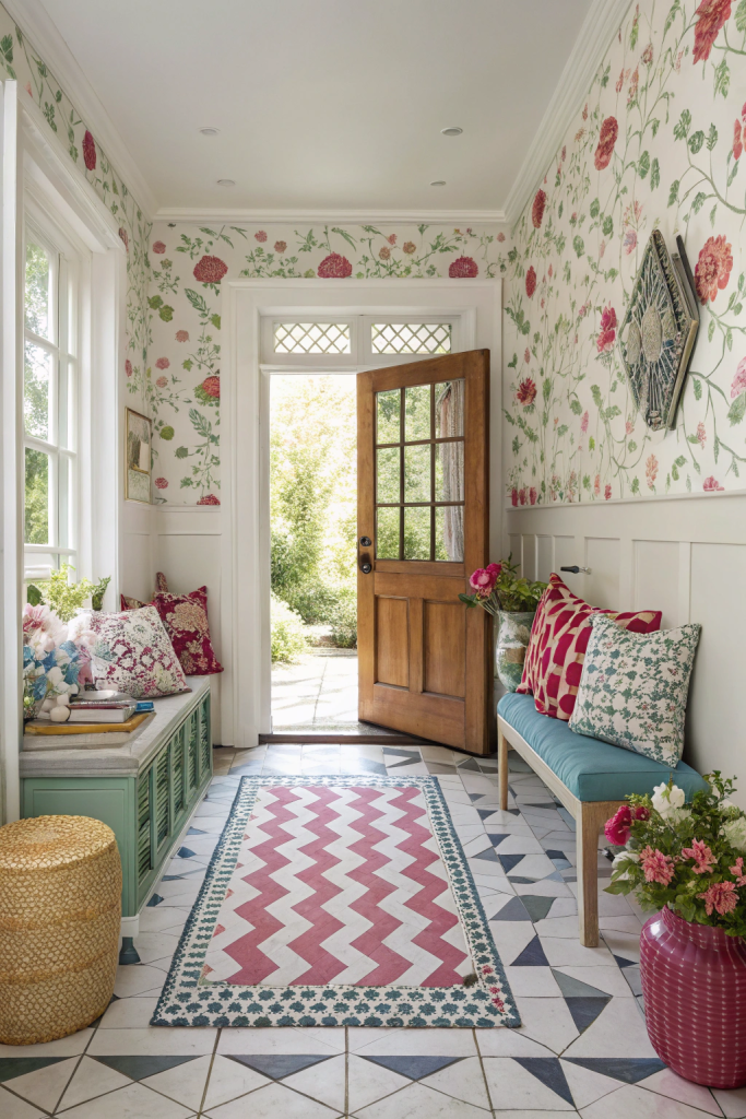Incorporating diverse patterns breathes life into your entryway. Combine geometric floor tiles with floral wallpaper or layer patterned rugs for a dynamic effect. Bold prints on cushions or accent furniture can further enliven the space, creating a vibrant and welcoming environment.