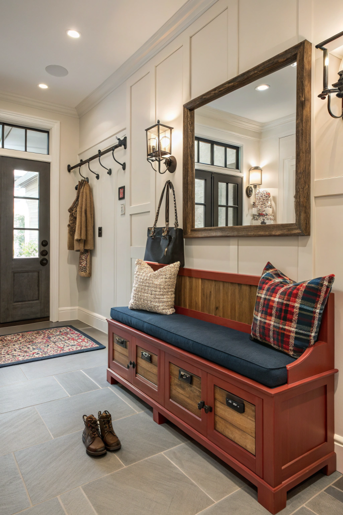 Functional furniture pieces can enhance your foyer’s usability while complementing its design. Consider adding: