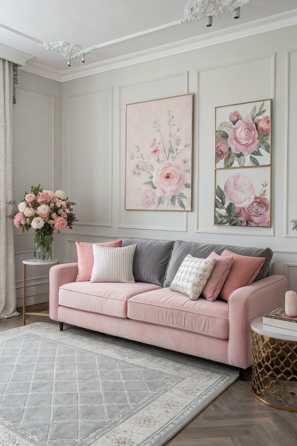 - Adorning a soft gray sofa with blush pink cushions for subtle contrast.