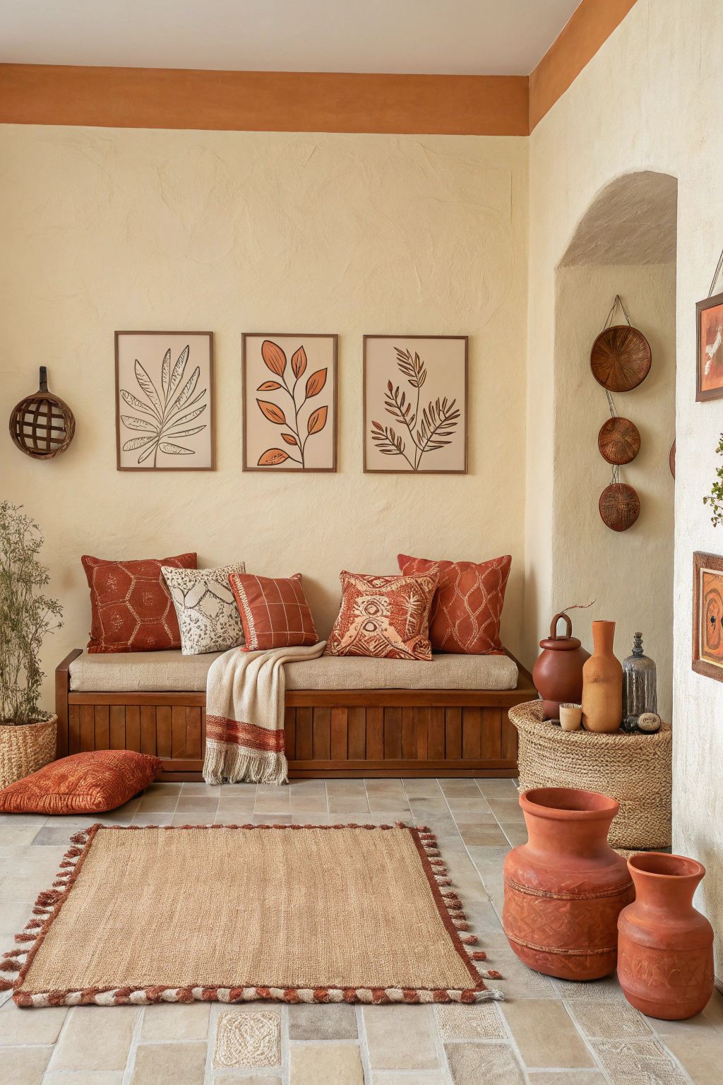 - Painting walls in a soft beige tone and adding terracotta accents through cushions or wall art.