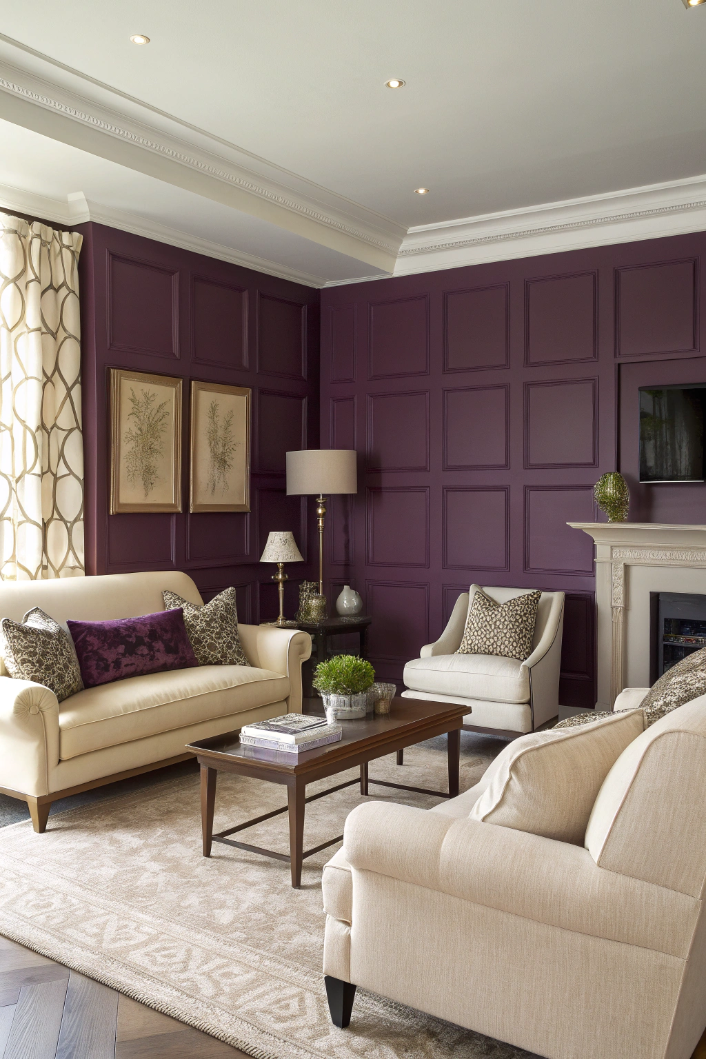 For a bold yet elegant statement, rich plum combined with soft cream offers a striking contrast. Use plum for an accent wall or statement furniture, balanced by cream-colored pieces to soften the overall look. This pairing creates a sophisticated and inviting atmosphere.