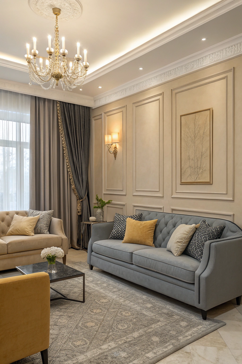Combining warm beige with cool gray creates a balanced and contemporary living room. This palette blends comfort with modern style. To bring this look together: