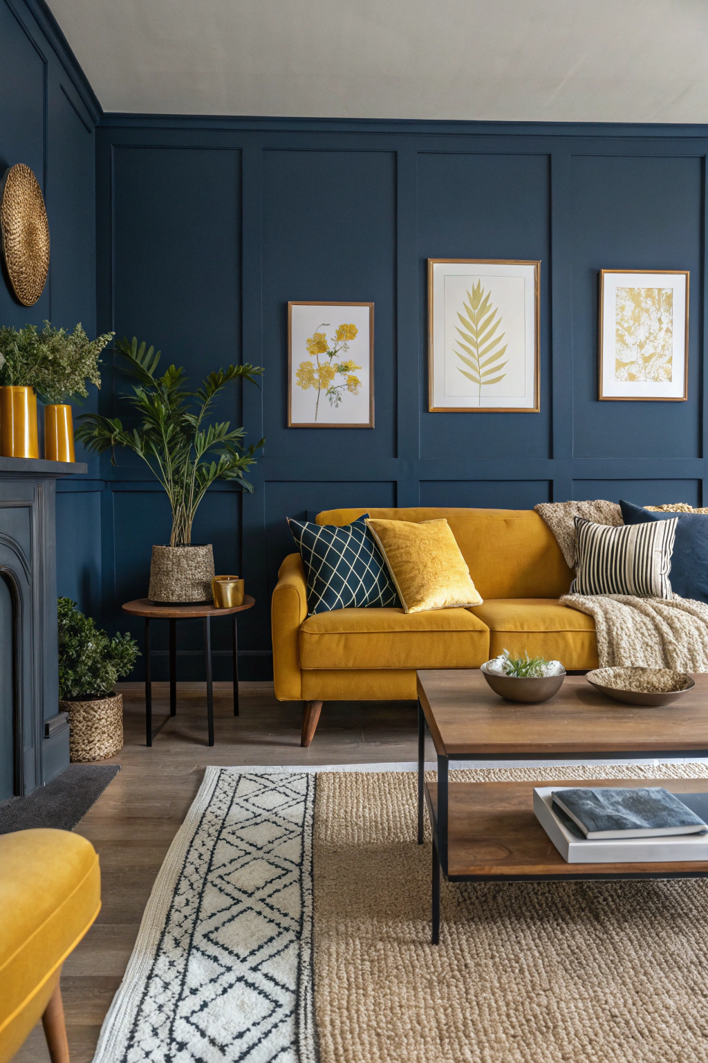 Bold Elegance: Navy Blue Meets Mustard Yellow