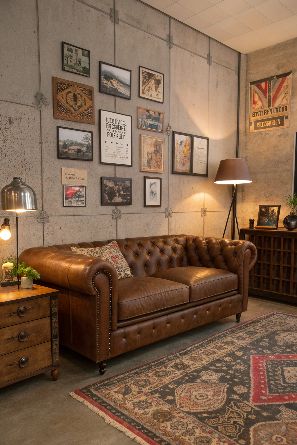 Adding vintage touches can infuse your living room with character and nostalgia, complementing the rich tones of your brown leather sofa. Seek out antique side tables, distressed rugs, or retro lighting fixtures to create a warm, lived-in feel. Unique wall décor, such as classic prints or framed memorabilia, can further enrich the space with personality and charm.