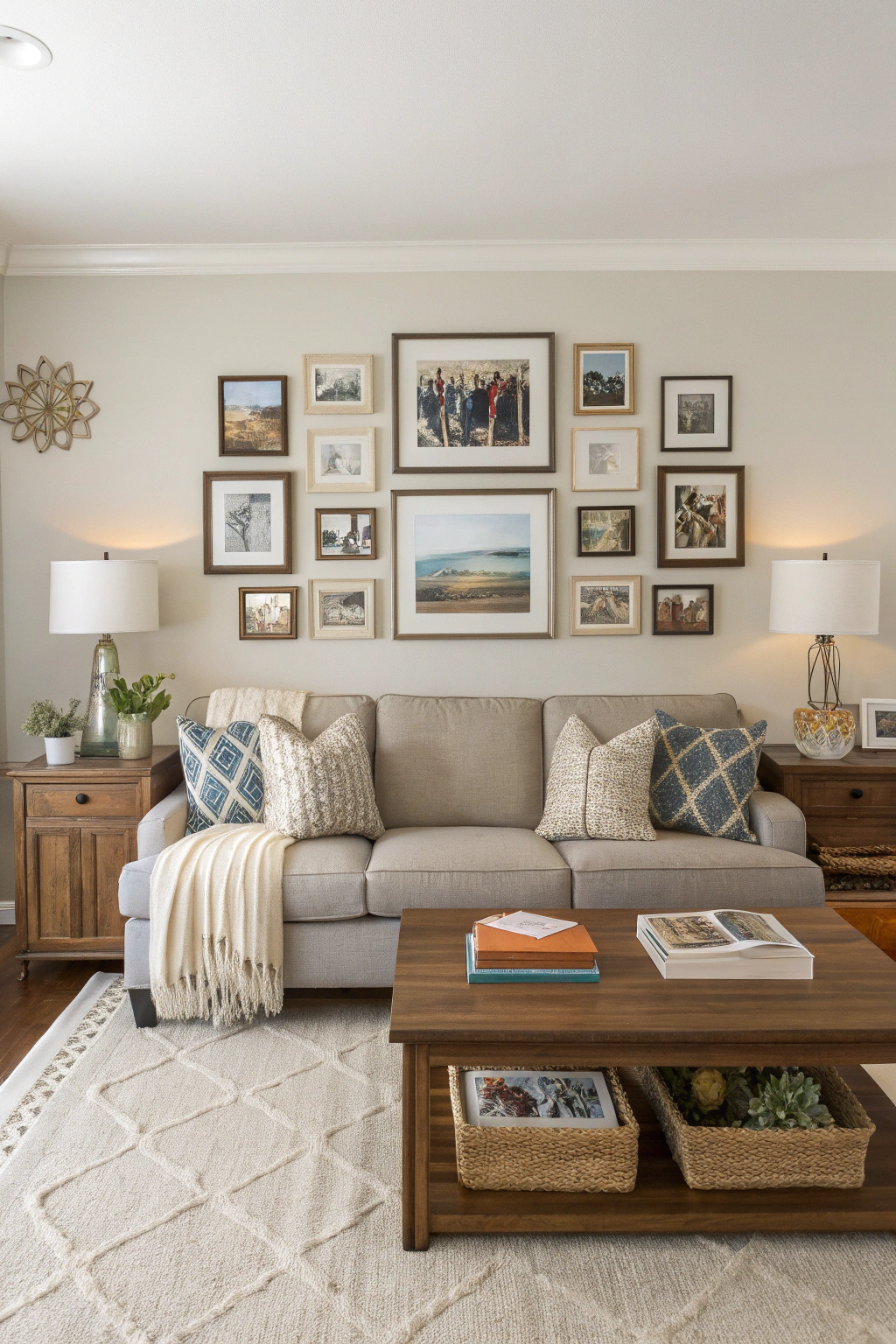 While symmetry provides structure, personal touches make your living room uniquely yours. Display cherished family photos in distinctive frames, showcase favorite artwork, or include souvenirs from your travels. Select decorative items that resonate with your personality, such as a soft throw or curated books, to add warmth and spark conversation.